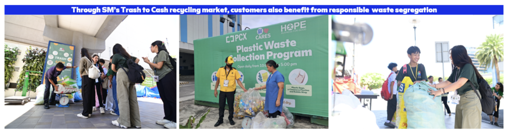 Recognizing that sustainability and protecting the environment is beyond the effort of one entity, SM has leveraged its presence nationwide through its properties to engage its customers and surrounding communities in maximizing the collection of recyclables especially plastics. Through SM Cares, its Corporate Social Responsibility arm, SM empowers communities to adopting sustainable practices through simple and accessible ways to take part in protecting the environment. Arresting the growing issue on pollution, the SM Group has enhanced waste segregation efforts to increase its collection and diversion of plastics from the environment since 2007 with its pioneer program, the Trash to Cash recycling market.