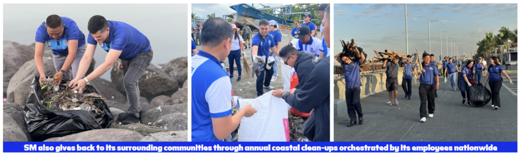 SM Group’s Trash to Cash initiative was organized by SM Cares as the pilot community program that encouraged customers to segregate recyclables like metal, paper, and plastic and exchange these for cash on a monthly basis. SM Supermalls also followed up this effort with the launch of two Reverse Vending Machines in SM Mall of Asia and SM Megamall which empowered customers to segregate aluminum cans and empty PETs in exchange for discounts on sports and leisure attractions. On top of these, SM also hosts nationwide coastal clean-up drives annually through the strength and effort of its workforce volunteers.