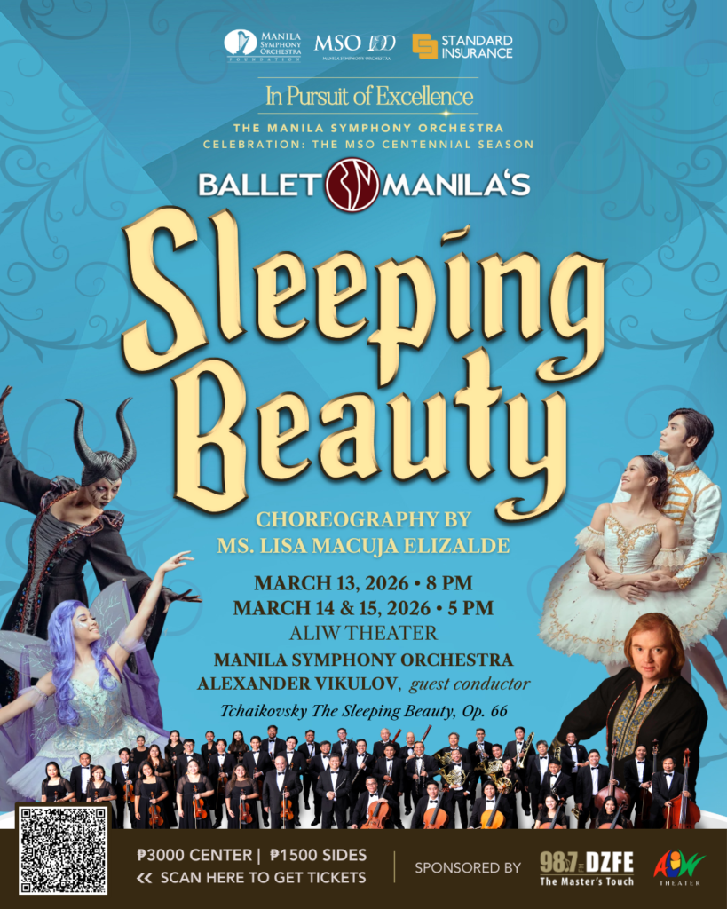 The three performances serve the Manila Symphony Orchestra’s Centennial Season and Ballet Manila’s 40th Performance Season, making it a shared milestone for two of the country’s leading performing arts institutions. Both organizations open their seasons with Ballet Manila’s “Sleeping Beauty”, music by Pyotr Ilyich Tchaikovsky, choreography by Ms. Lisa Macuja Elizalde. This concert is presented with live orchestral music by the Manila Symphony Orchestra under the baton of Russian conductor, Maestro Alexander Vikulov.