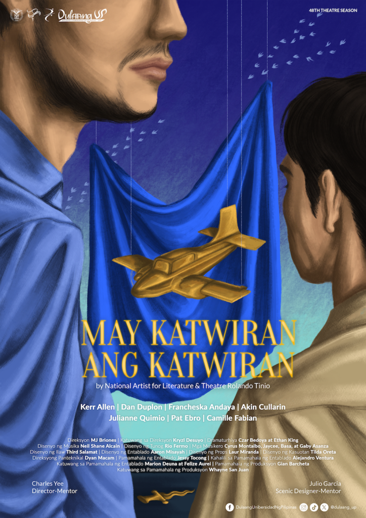 The second play in Para kay Tony features National Artist Rolando Tinio’s May Katwiran ang Katwiran. The plot centers on Senyor, a wealthy haciendero who persuades his servant to join him on a journey across the mountains. Along the way, they encounter obstacles that threaten their survival. The staging is led by Theatre Arts student MJ Briones with director-mentor Charles Yee. Acting in the play are Francheska Andaya, Julianne Quimio, Akin Cullarin, Pat Ebro, Kerr Allen, Camille Fabian, and Daniel Duplon.