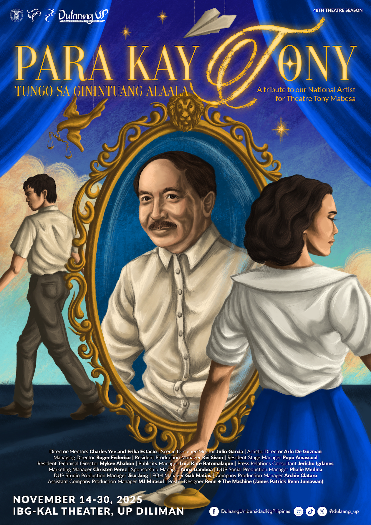 Para Kay Tony is part of Dulaang UP’s 48th theatre season “Paano umuwi nang may pagpapasya?” The season is part of a multi-year initiative building to Dulaang UP’s 50th anniversary. Since its inception in 1976, Dulaang UP has been staging classic and experimental plays while providing a platform of artistic expression for the UP Diliman community.