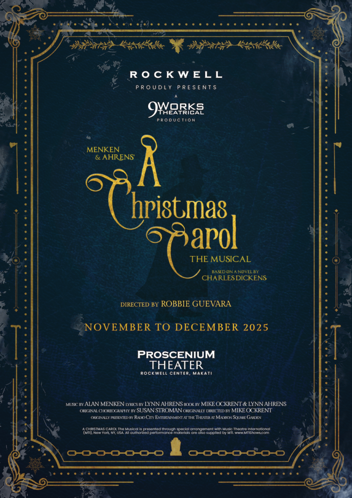 A CHRISTMAS CAROL will be showing on all weekends from November 29 until December 21, 2025, at 7:30 PM on Fridays and Saturdays, and 3:00 PM on Saturdays and Sundays, at the Proscenium Theater, Rockwell Center in Makati City. Tickets will be available on Ticketworld.