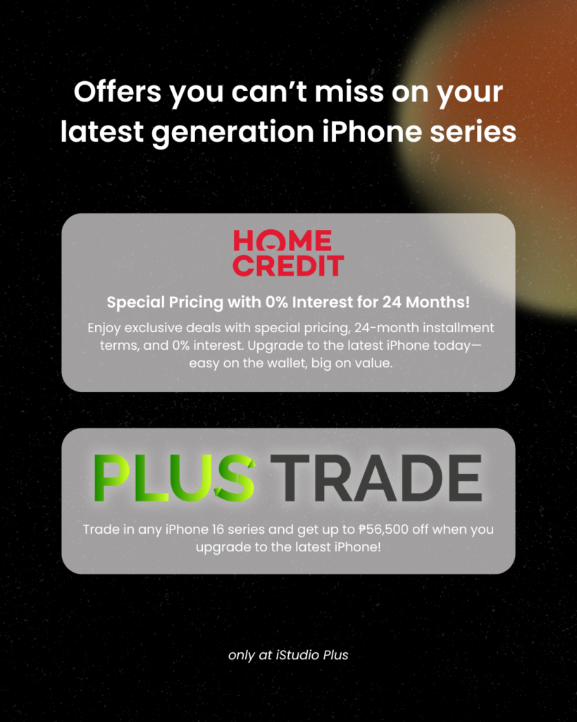 - PLUSTRADE: Customers trading in any iPhone 16 series model received a discount of up to P56,500 when upgrading to the latest iPhone.