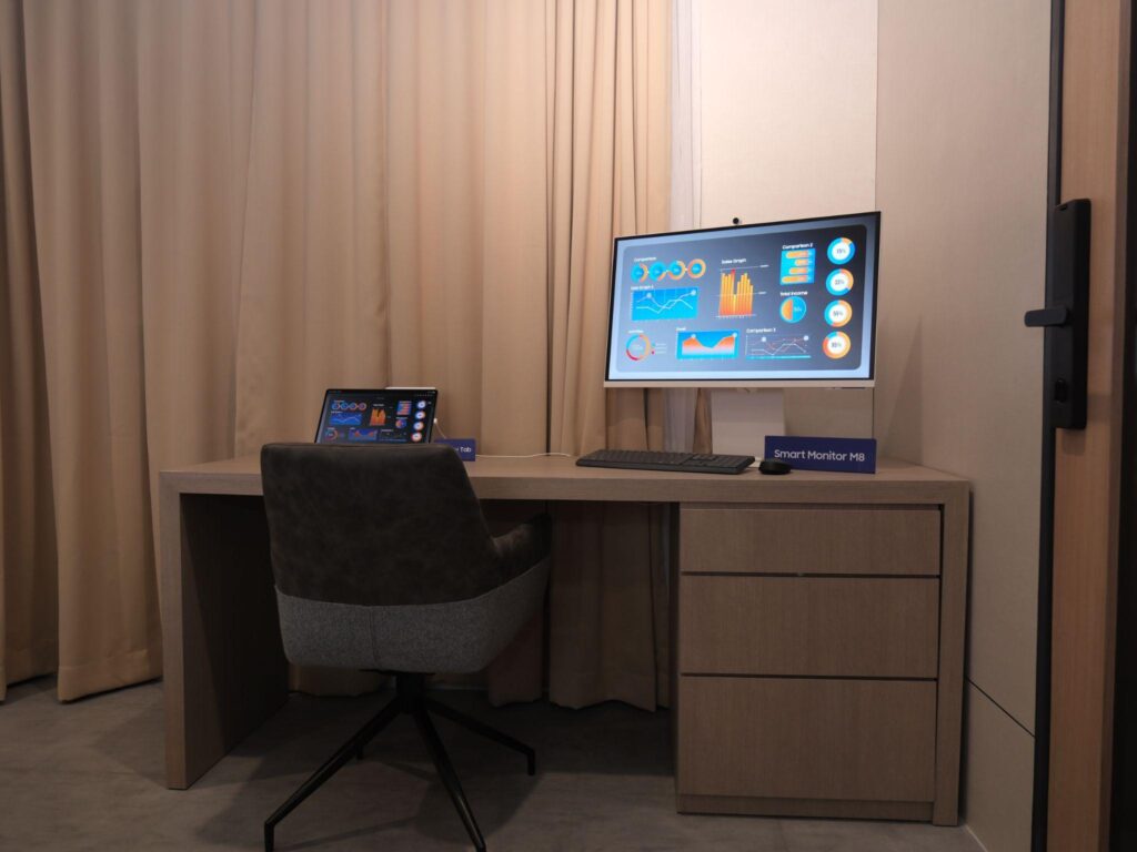 For home offices, Samsung’s connected innovation increases productivity by streamlining work modes. Professional workers working from home can use SmartThings to connect the Smart Monitor M8 to Galaxy tablets to make content handoff between devices more seamless. They can even check their running appliances or manage their home security without leaving their workspace.
