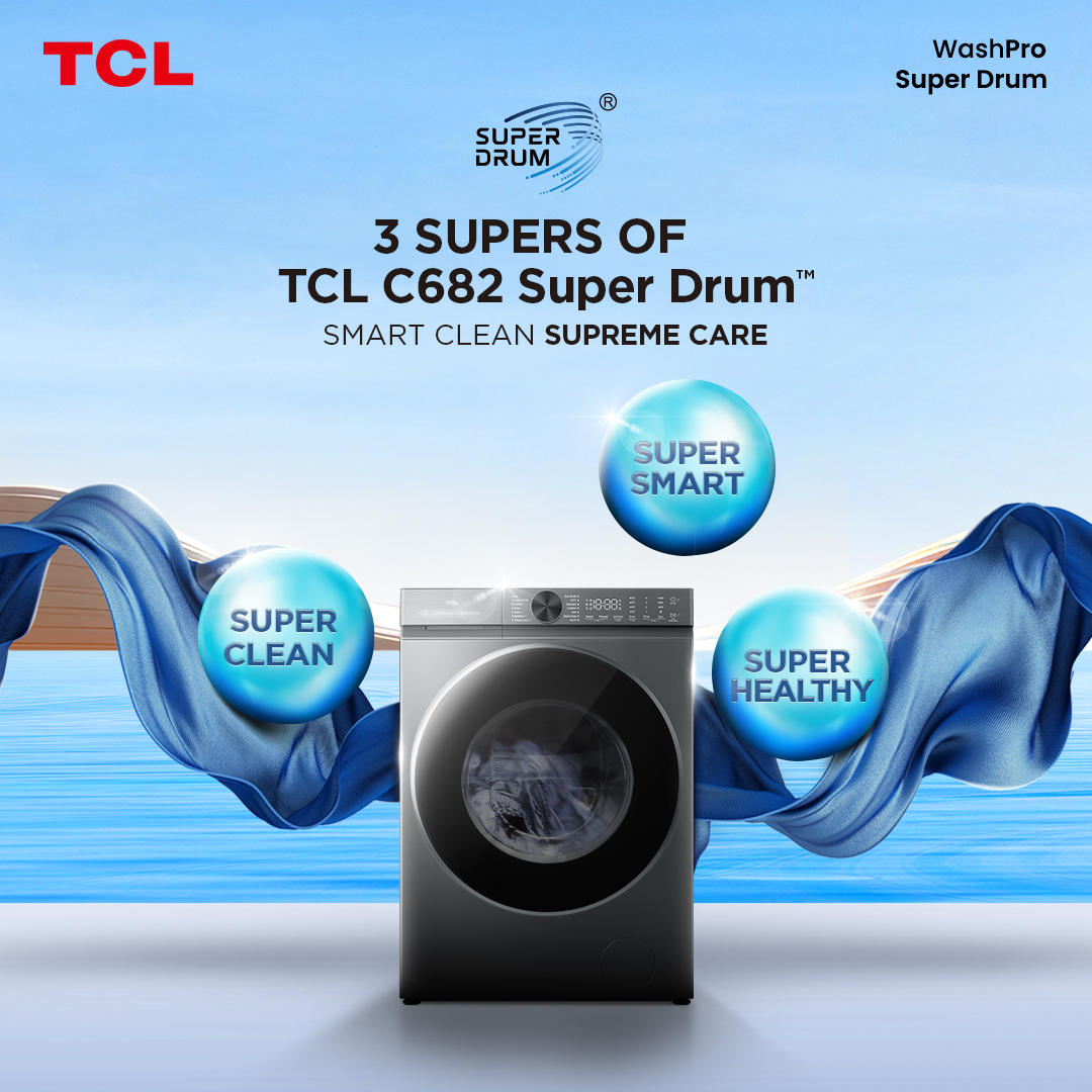 TCL, the Philippines’ No. 1 Panel TV brand and a global leader in TV and air conditioner sales, has made laundry solution smarter, easier, and quicker with the arrival of TCL Super Drum C682. It’s a sophisticated laundry solution designed to maximize cleaning efficiency while prioritizing fabric care and user convenience. By integrating innovative technology and intelligent design, the TCL Super Drum C682 sets a new standard for modern home appliances.